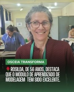 🌹 Rosilda, 56 anos, costureira com 14 anos de experiência 🧵, encontrou no Módulo de Aprendizagem de Modelagem, a oportunidade de realmente aprender e colocar em prática.💡 Ela destaca como a aula tem sido essencial para aprimorar suas habilidades e dar mais confiança ao seu trabalho.